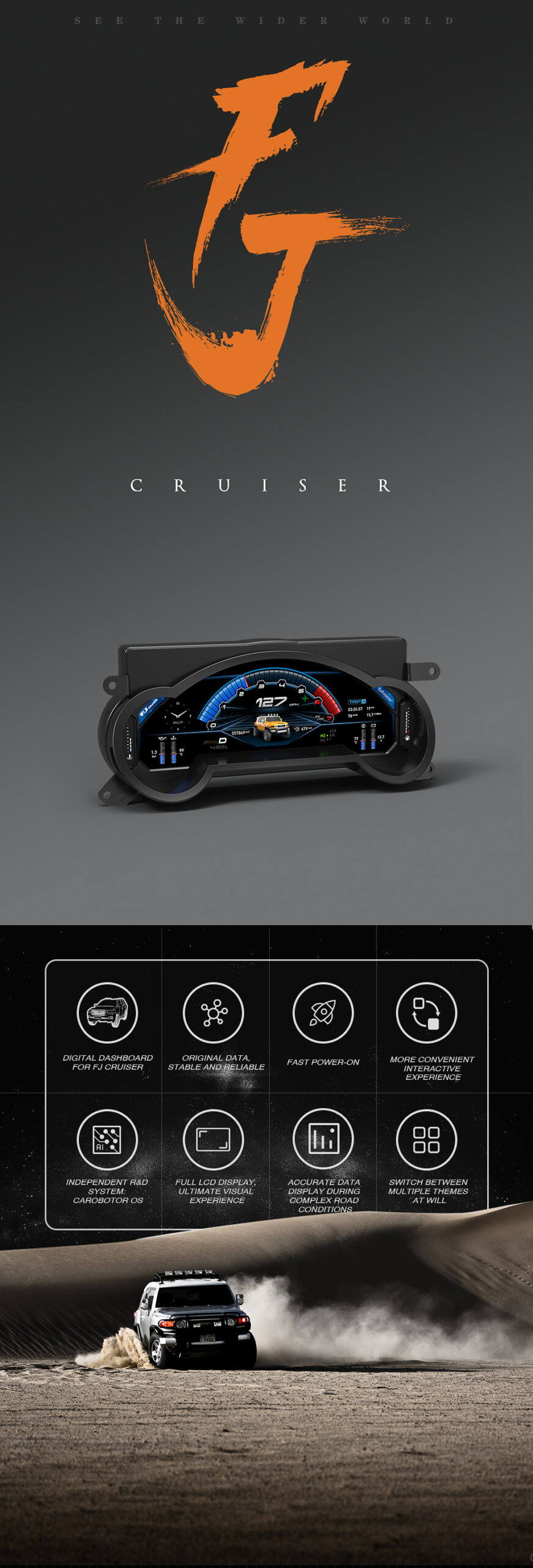 - Carobotor FJ cruiser digital dash show all original data. The Linux system is very stable and reliable. It’s an independent R&D system with CAROBOTOR OS.