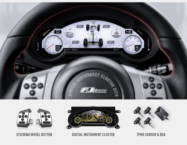 Carobotor FJ digital dash can fit all FJ cruiser 2007-2020 car models. FJ Plus is a unique and high quantity upgrade digital instrument cluster for FJ Cruiser. It’s the first aftermarket digital dashboard for FJ cruise. The Carobotor Digital Dash upgrades your FJ Cruiser factory digital dashboard to a fully functional digital version. It can give you so many data that the factory dash doesn’t have, like TPMS, torque, oil pressure, coolant temperature etc.